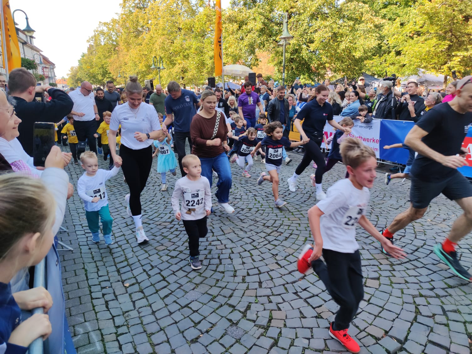 Northeim (hakö). Die Northeimer Innenstadt erlebte nach dem Weinfest und Klostermarkt einen weiteren absoluten Höhepunkt. Groß war am Sonntag der Jubel bei den Organisatoren unter Federführung eines ungemein engagierten Paul Lehmann und der einmal mehr perfekten Logistik des Kreissportbundes mehr als 1.800 Läuferinnen und Läufer beim Stadtlauf. Das bedeutete Teilnehmer-Rekord und dürfte die Forderung nach "Sportstadt Northeim" wieder glühend aufleben lassen. Im Fordergrund stets die Freude am Sport, an der Begegnung mit Freunden aus Niedersachsen und darüber hinaus. Nach dem 21,44 km Wieter-Trail-Run und 5.000 Meter Walking-Lauf ereiferte sich der Nachwuchs in verschiedenen Altersgruppen. Bei prächtigem Herbstwetter hatten auch die Zuschauer, Eltern und Freunde, ihren Spaß an Start und Ziel auf dem Münsterplatz vor dem Bürgerbüro und an den Laufstrecken. Einmal mehr durfte sich auch die einladende Außengastronomie der Kreisstadt freuen.