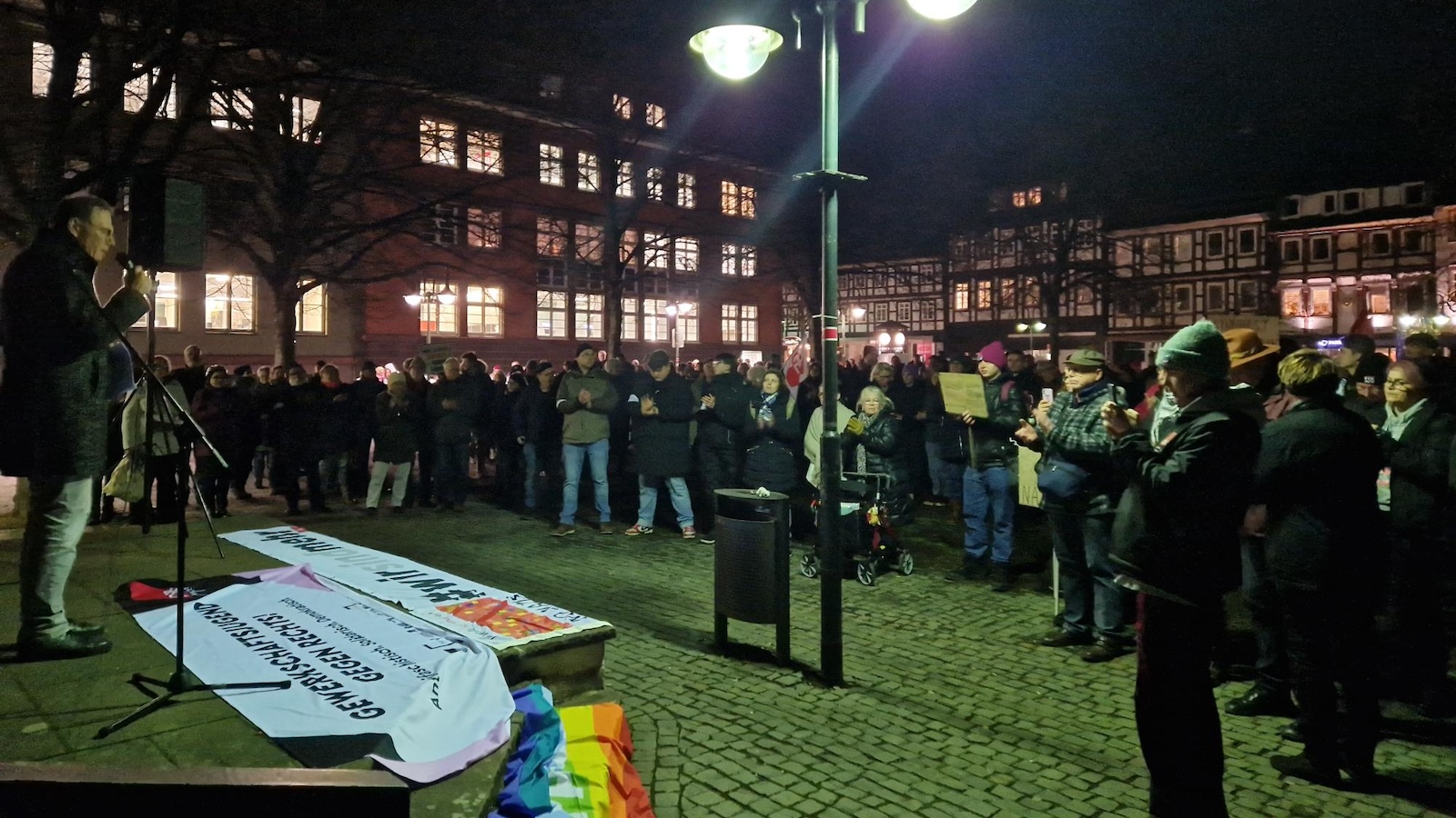 Die Redner*innen am Münsterplatz und am Marktplatz waren sich einig: Northeim ist bunt, weltoffen, demokratisch. Die Veranstaltungen der AfD und aller anderen Rechtsextremisten sind nicht willkommen. Mit solidarischem Miteinander und weiteren Kundgebungen werde man auch bei zukünftigen Veranstaltungen diesen Standpunkt vertreten. Man habe eine historische Verantwortung und werde nicht die Augen verschließen, wenn die Demokratie solchen Angriffen ausgesetzt sei.
