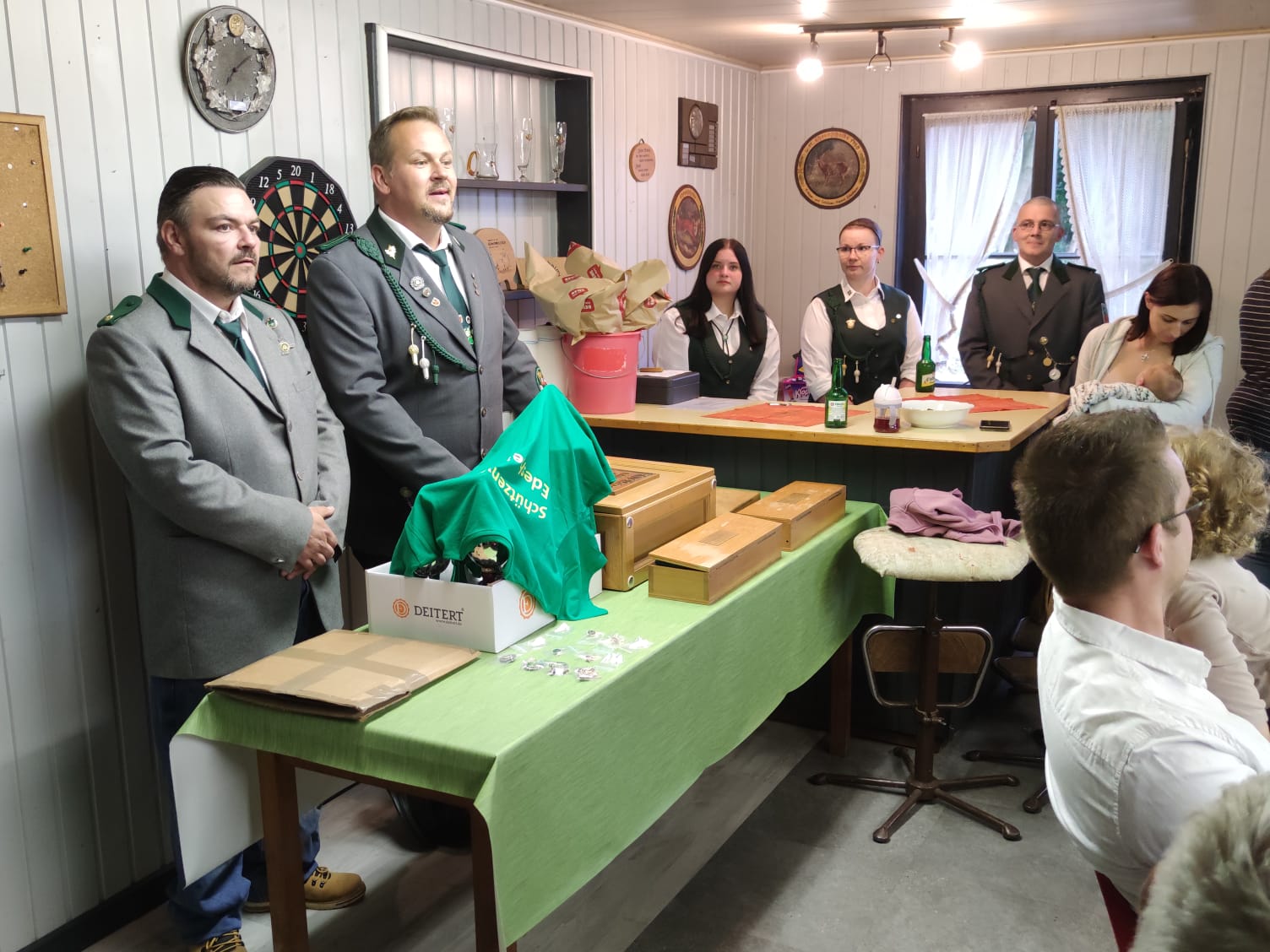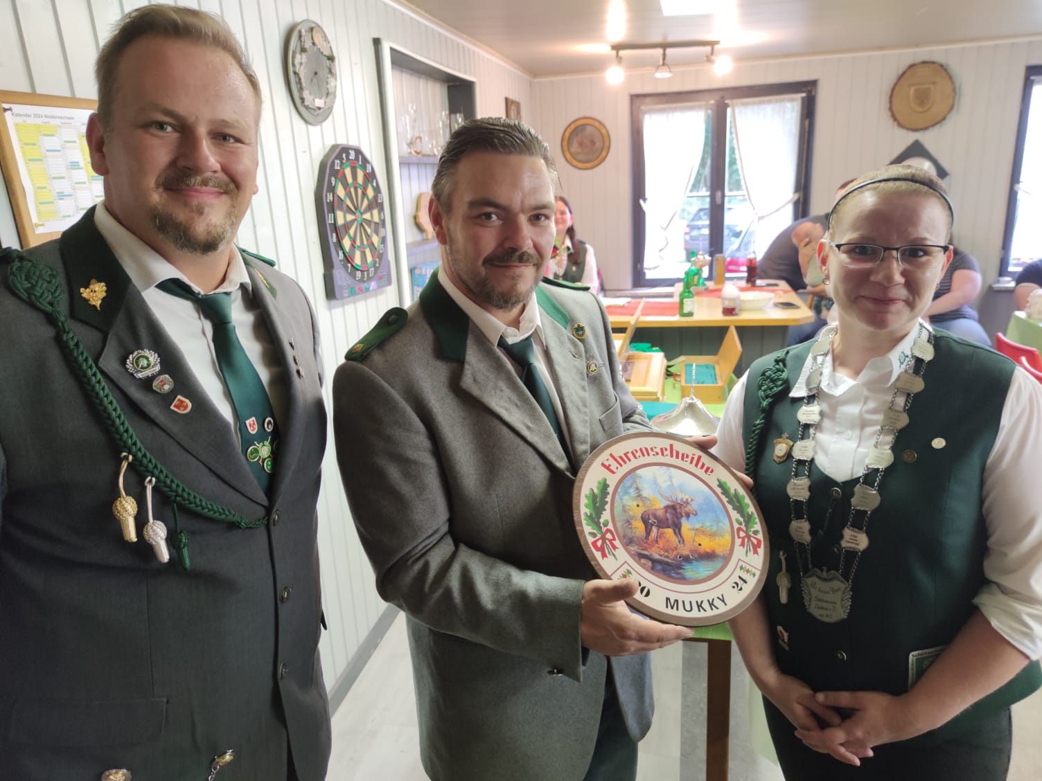 Der Vorstand, vertreten durch Tobias Hamel und Stefan Bracht, überreichte neben den Königsketten, Bestemann und BesteDame auch die Ehrenscheiben. Bei den Frauen konnte auch hier die BesteDame Alexandra Peters die Scheibe gewinnen. Bei den Herren gelang es dem König, die Ehrenscheibe zu erkämpfen: Das war Manuel Schade. Die Königsfeier wurde in geselliger, fröhlicher Runde mit Speis und Trank abgehalten. Der Ortsbürgermeister-Pokal wurde durch den stellvertretenden Ortsbürgermeister Dennis Gebel überreicht. Der Bürgerkönig wurde vom SV Edesheim auch bekannt gegeben: Es ist Frank Schoppe. Der rührige Verein möchte sich noch einmal bei allen Schützen bedanken. Es sei, so hieß es, immer wieder eine Freude, mit Menschen, die sich so engagiert für unseren Sport begeistern und motivieren können, zusammenzuarbeiten.