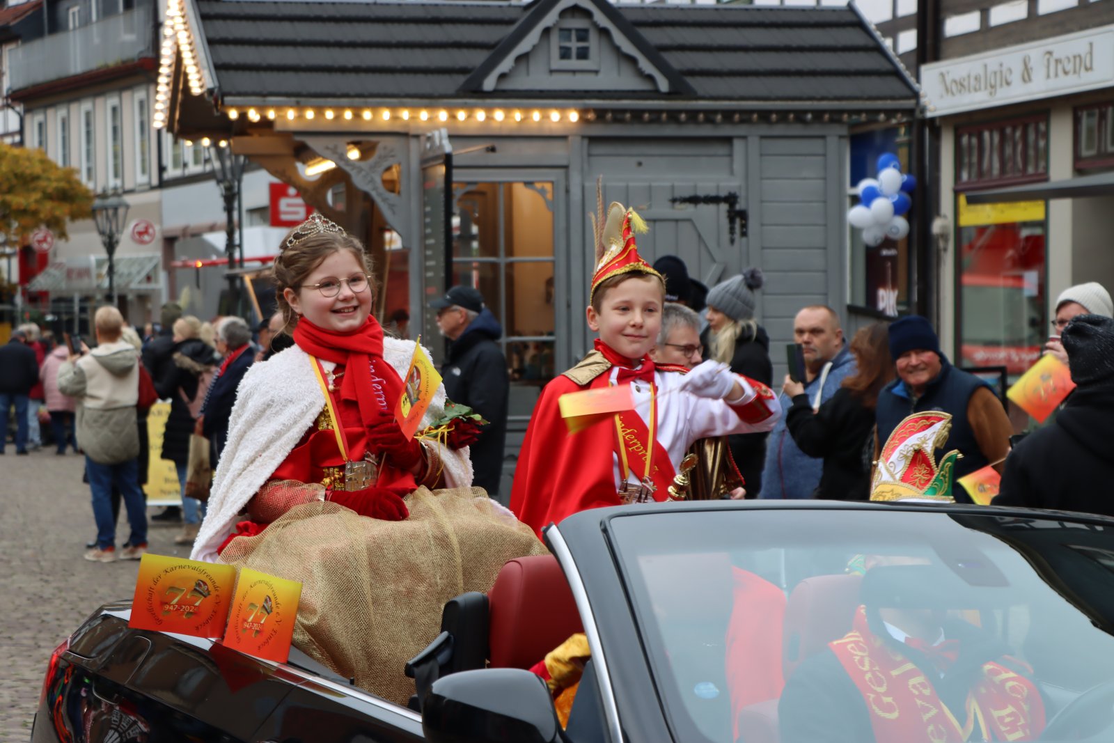Als der sehnlichst erwartete Umzug auf dem Marktplatz eintraf, jubelte das Publikum und schwangen ihre Fahnen. Kinder sammelten begeistert Kamellen ein, welche vom Umzug in die Menge geworfen wurden. Mit ihren aufwendigen und bunten Kostümen erleuchteten die Narren und Närrinnen den grauen Novembertag. Angeführt wurde der Umzug vom Fanfarenzug Einbeck. Danach waren die Garde, das Tanzmariechen und die Funkengarde zu sehen sowie der Bierbrunnen-Umzugswagen, auf welchem der Prinz Philipp Jörns (der 1.) und seine Frau, Prinzessin Teresa Jörns (die 1.) hoheitlich chauffiert wurden.