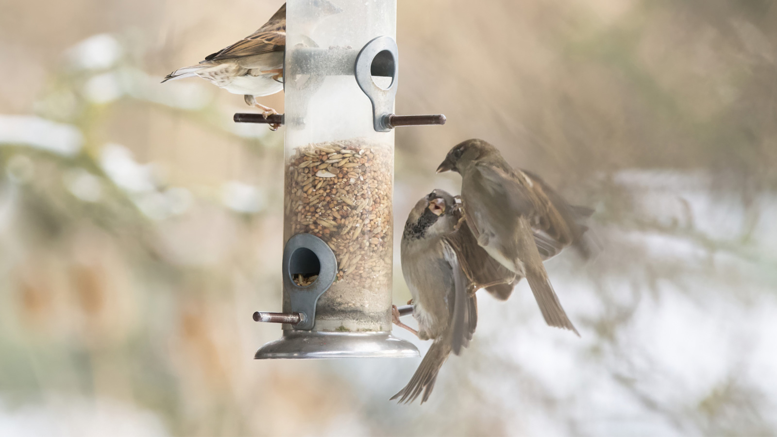 Allerdings kommt eine Winterfütterung nicht allen Arten zugute, denn nicht alle Vögel mögen die gleiche Nahrung. Rotkehlchen, Meisen und Heckenbraunellen sind zum Beispiel eher seltene Gäste an einem mit Sonnenblumenkernen gefüllten Futterhaus, denn sie gehören zu den Weichfutterfressern. Auch Amseln und Stare mögen gerne weiche Haferflocken oder Rosinen. Für diese Fraktion sind energiereiche Fett-Körner-Mischungen besonders attraktiv. Dafür fügt man aushärtenden Fetten wie Rindertalg und Speiseölen im erwärmten Zustand die gleiche bis doppelte Menge an Sämereien zu. Besonders Meisen untersuchen die dargebotenen Körnerknödel (am besten ohne Netz), nehmen aber auch Beerenfrüchte und Hanfsamen gerne an. Die harten Sonnenblumenkerne erfreuen dagegen besonders die Körnerfresser mit ihren kräftigen Schnäbeln, wie Finken und Sperlinge. Zaunkönig und Schwanzmeise leben auch im Winter überwiegend von lebenden Insekten und anderen kleinen Gliedertieren und müssen daher im Unterholz besonders eifrig auf Jagd gehen. Spechte, die ansonsten im Holz lebenden Insekten nachstellen, oder Kleiber gehören dagegen zu den „Allesfressern“ unter den Weichfutterfressern. Sie stellen sich im Winter um und verschmähen dann auch Körner und Sämereien nicht.